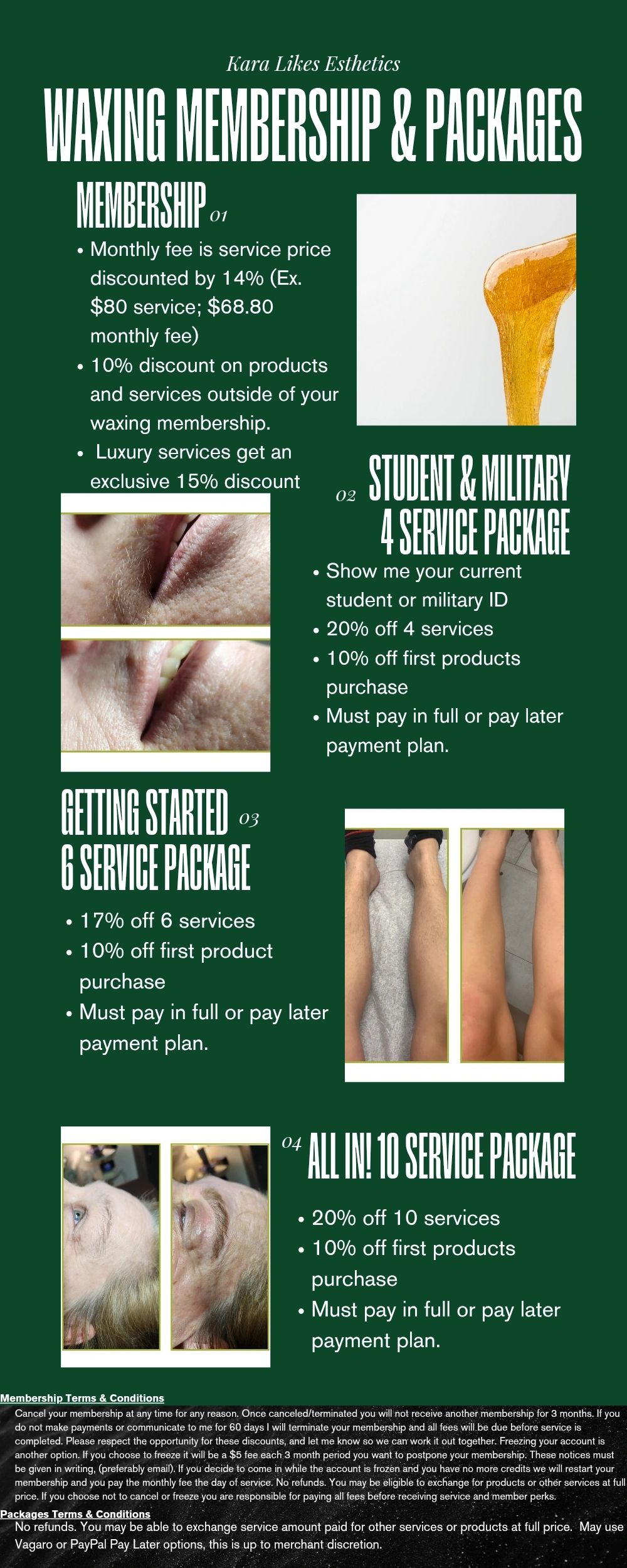 If you'd like to sign up for a package or membership just call or text me for an invite to the package/membership of your choosing. You can also contact me about any price inquiries.